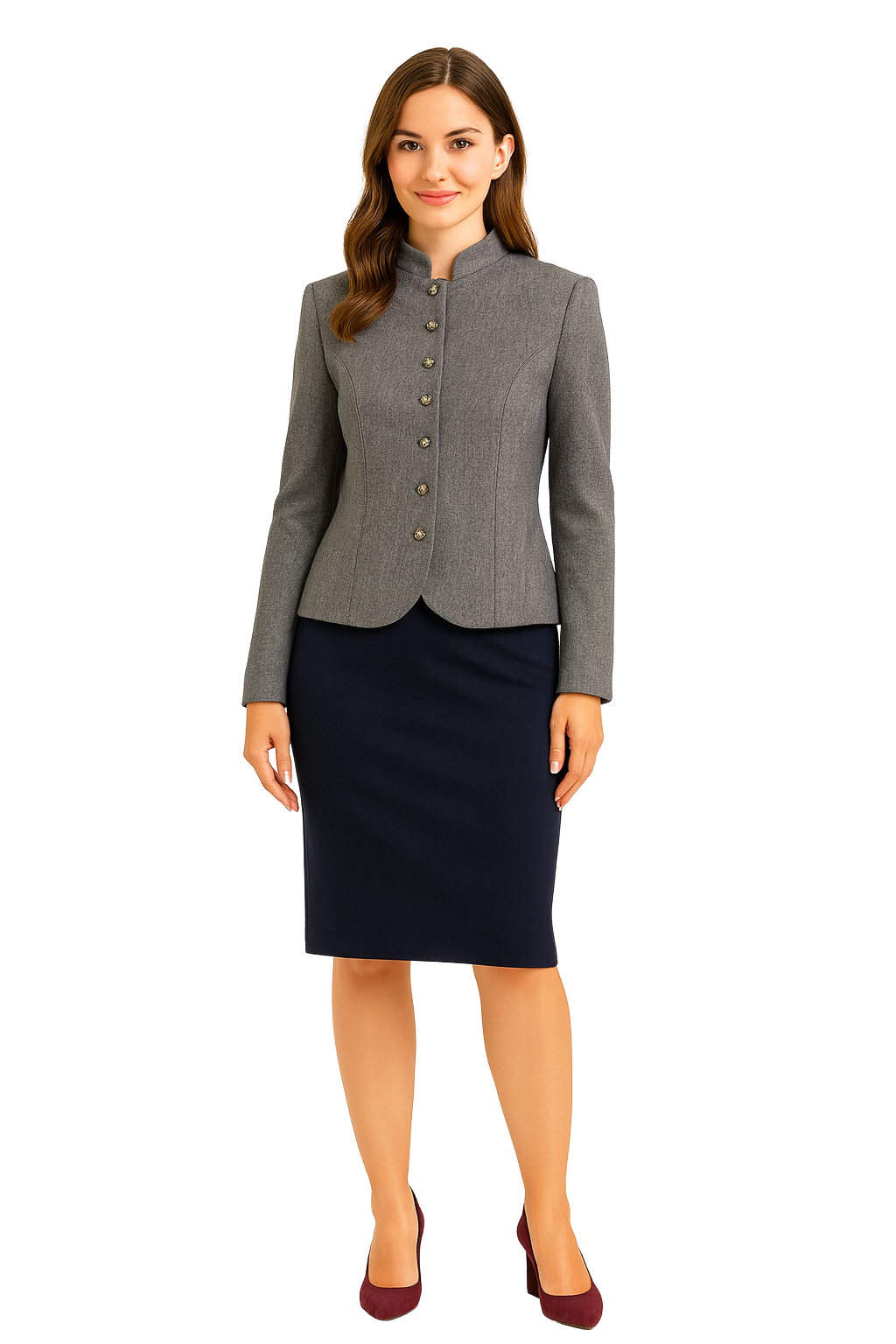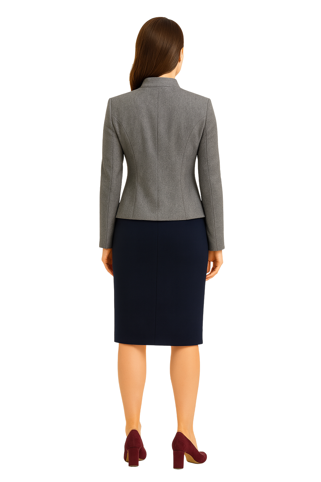 Un sacou care îmbină rafinamentul clasic cu finețea modernă. Nuanța de gri mediu transmite eleganță calmă și profesionalism, fiind alegerea ideală pentru femeia care apreciază simplitatea sofisticată. Croiala sa conturată oferă o siluetă echilibrată, care pune în valoare feminitatea cu subtilitate.
