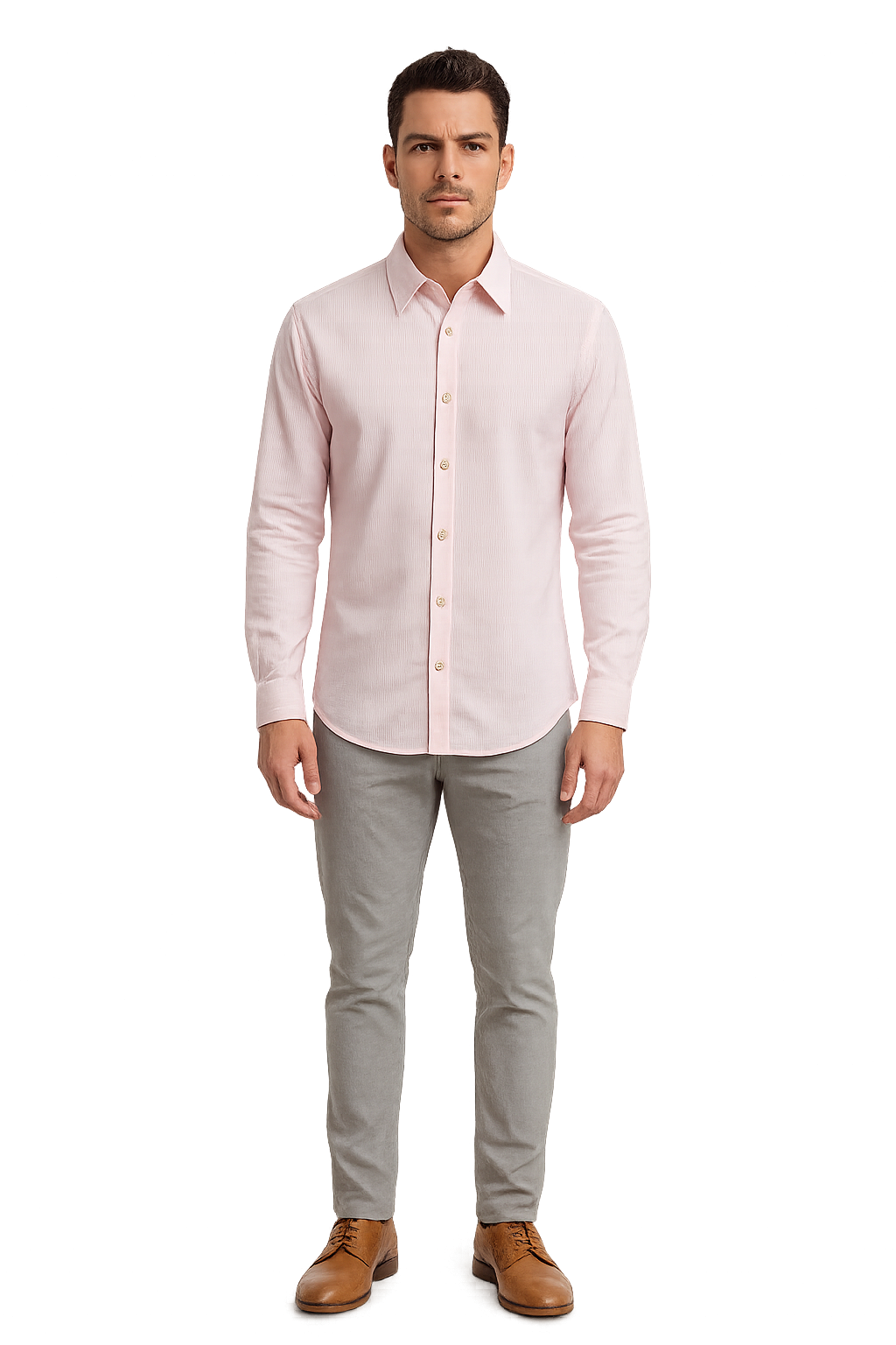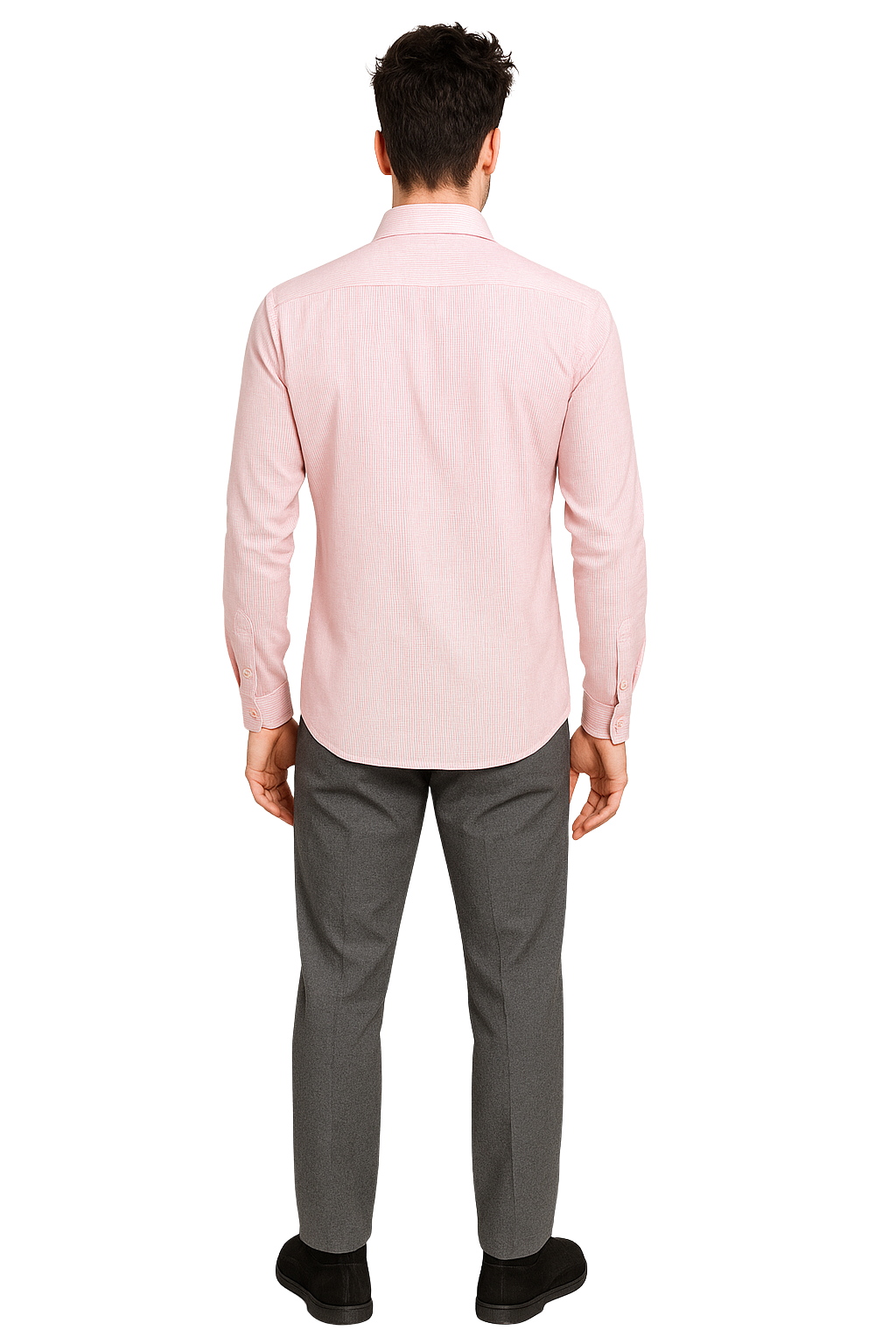 Modelul cu dungi extrafine alb–roz pastel oferă un look fresh, luminos și elegant, potrivit atât pentru birou, cât și pentru întâlniri casual sau evenimente de zi. Tonul roz este foarte discret — masculin, modern și perfect pentru bărbații care preferă culorile curate și asortabile.