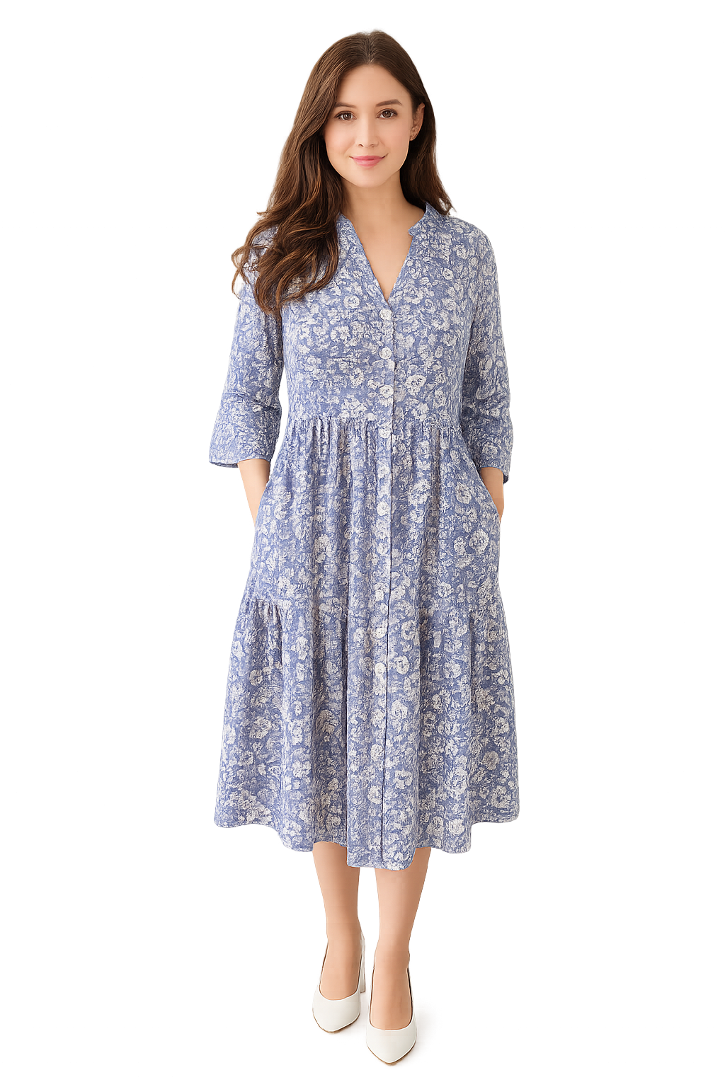 Simte-te elegantă și confortabilă cu această rochie din bumbac 100%, cu un imprimeu floral delicat în nuanțe de albastru și alb. Designul său lejer și feminin o face perfectă pentru plimbări, întâlniri sau zile relaxante.
