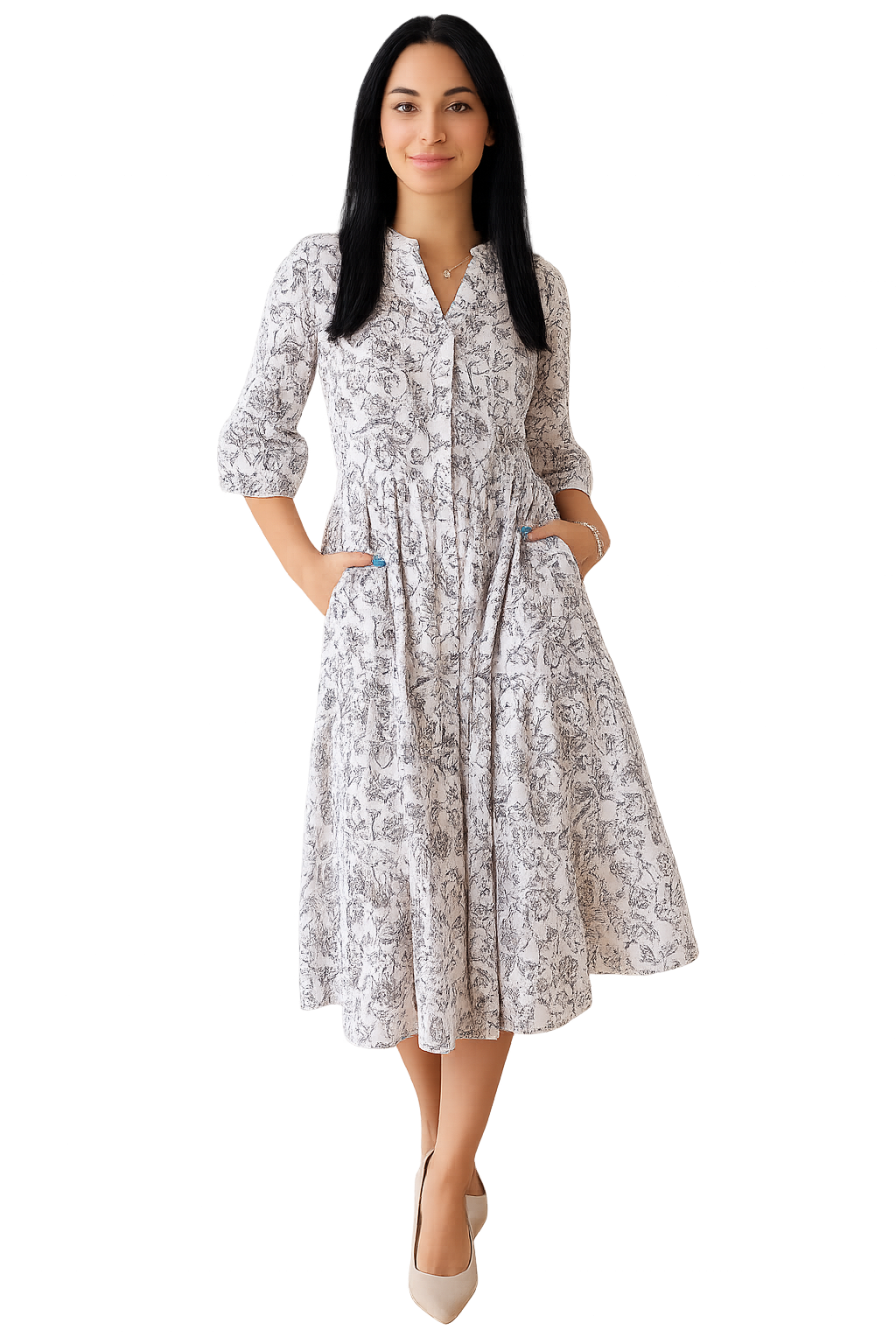 ✔ Croială feminină: Lejeră, cu talia evidențiată discret